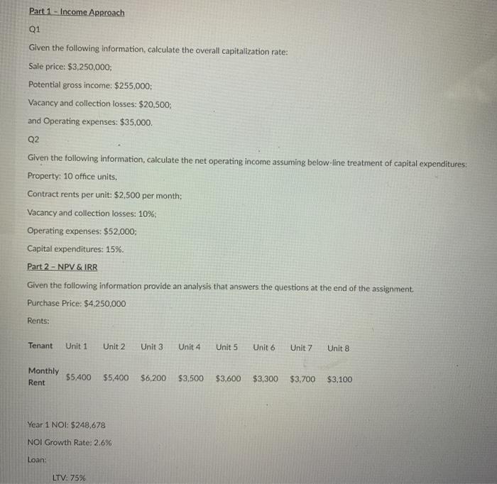 Solved Part 1 Income Approach Q1 Given The Following Chegg Com